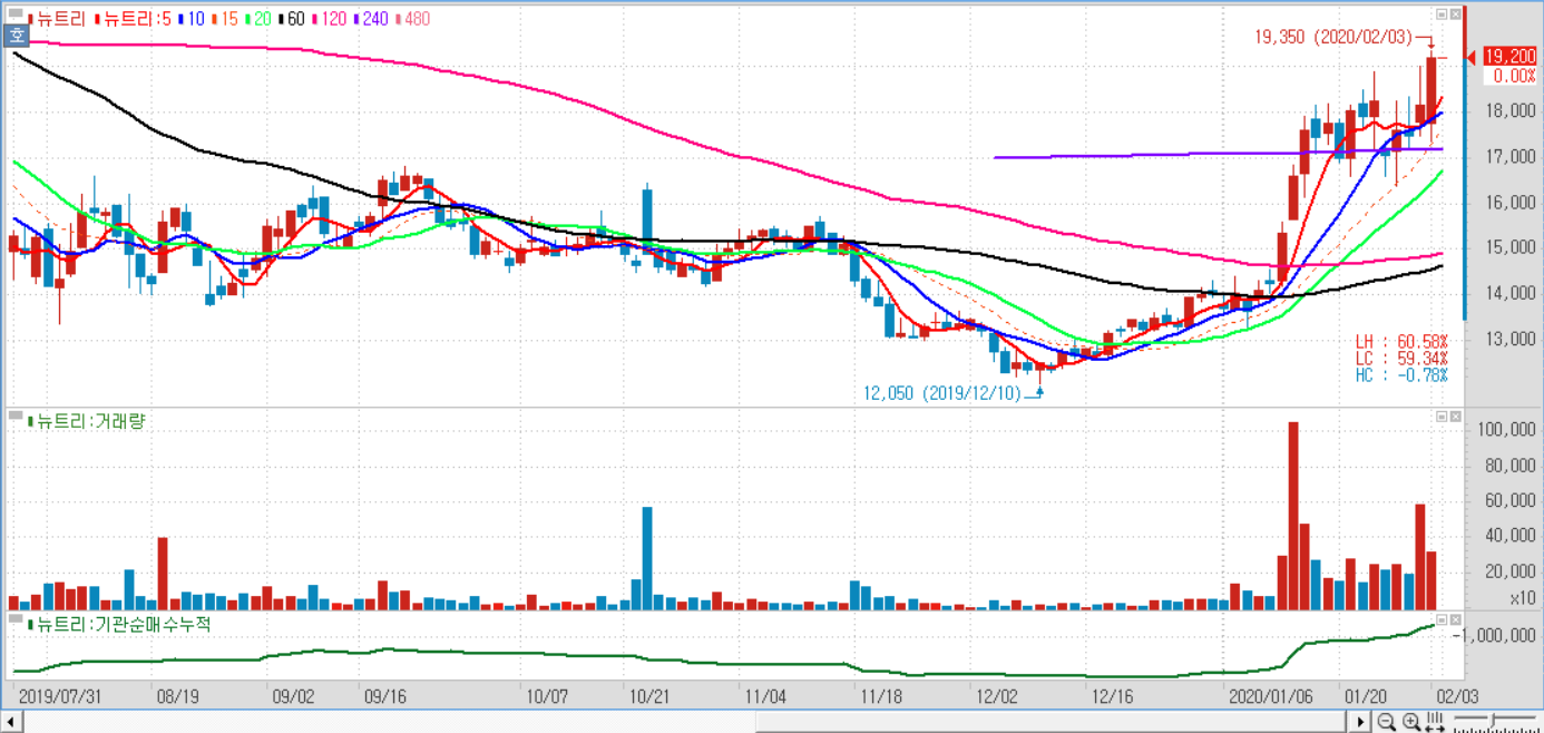 뉴트리의 지난 4분기 매출액이 전년 동기 대비 98.6% 증가한 352억원, 같은 기간 영업이익은 41억원으로 흑자 전환할 것으로 내다봤다. 지난해 하반기 전사 매출액이 월 100억원을 웃도는 수준으로 영업 호조를 보인 가운데 올해는 주력 상품인 콜라겐 제품으로만 월 매출액 100억원 수준이 가능할 것이라는 설명이다.